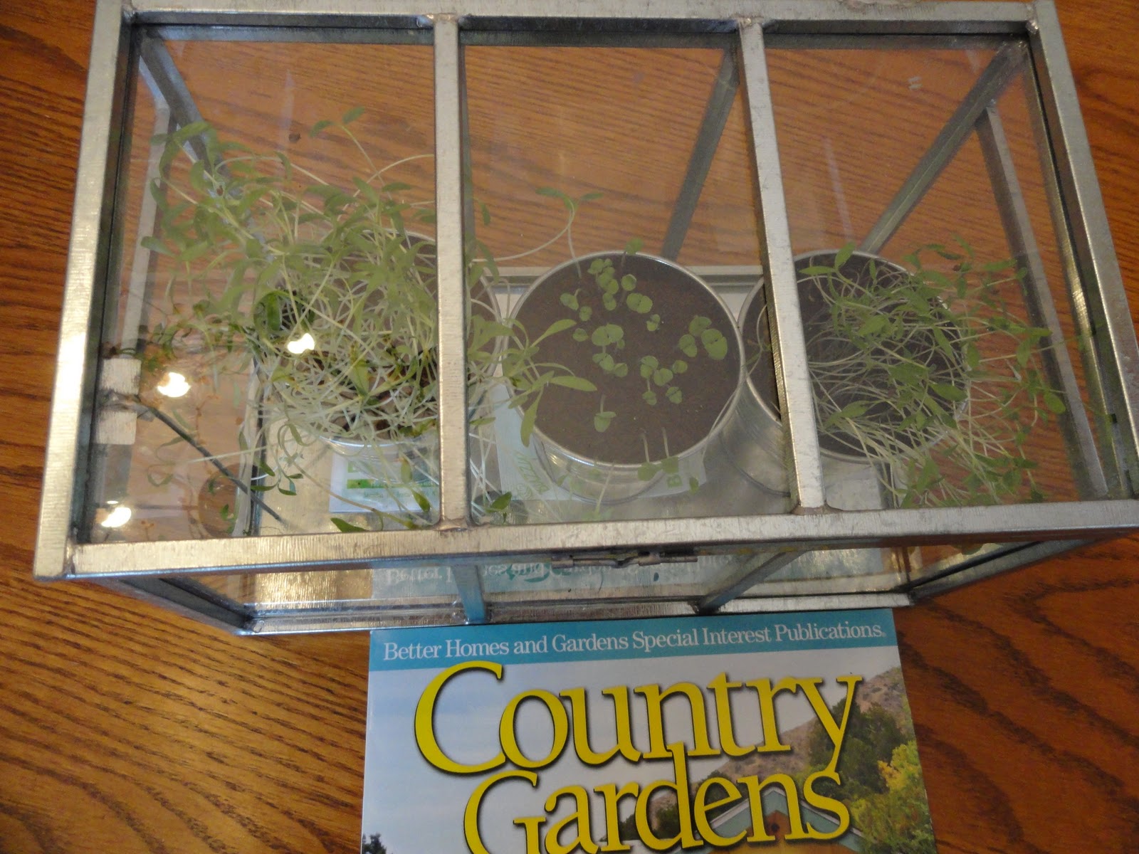 As I’m nurturing my herbs in my tiny greenhouse, the phone rings and it’s Dear Husband calling to cheerily announce that “de plane” just landed safely in Los Angeles, and oh yeah, the next one leaves for San Diego soon, that’s California!  It’s nearly 70 degrees, sunny and the palm trees are waving gently in the breeze.